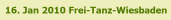 Vielleicht kann die Lösung auch in/mit Mainz verbunden sein. Bei unserem Ausweichtermin im Haus der Jugend gab es viel positives Feedback, wir haben zwei Räume und die Kosten liegen etwas niedriger. Bisher haben wir dem nicht so viel Raum gegeben, weil es dazu auch besorgte Meinungen anderer Veranstalter gab. Nachdem jetzt in 09 erlebbar war, dass auch bestehende Abmachungen nicht umgesetzt wurden, mögen und können wir diese Bedenken nicht mehr so ernst nehmen. Daraus gewinnt der Gedanke, mit Frei-Tanz in Mainz und Wiesbaden zu sein, mehr Kraft. (Wir werden weiter einseitig versuchen Terminüberschneidungen, unabhängig vom Veranstaltungsort zu vermeiden)